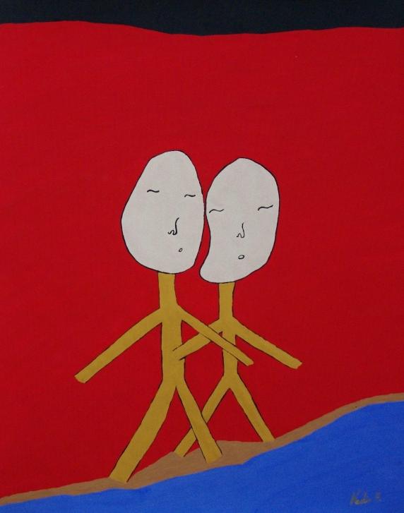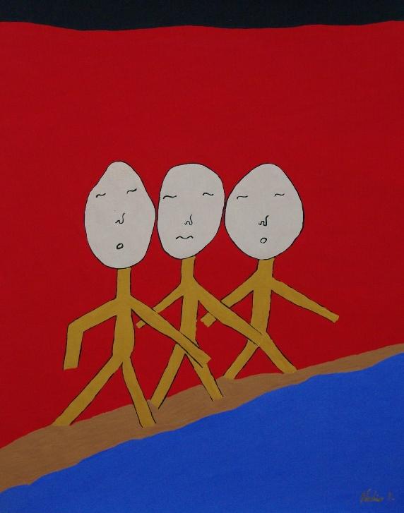 Vier Variationen einer Figur: Ruhe, Rhythmus und leuchtende Flächen in Plakatfarbe.