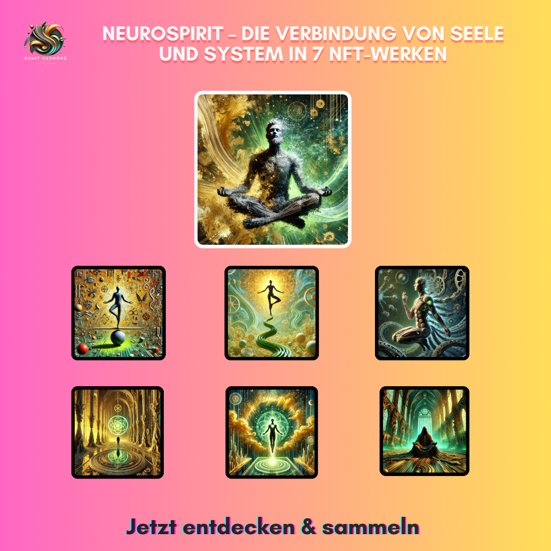 Entdecke die NFT-Serie „Neurospirit“, wo farbenprächtige Kunstwerke die Verbindung zwischen Mensch, Geist und digitalem System visualisieren.