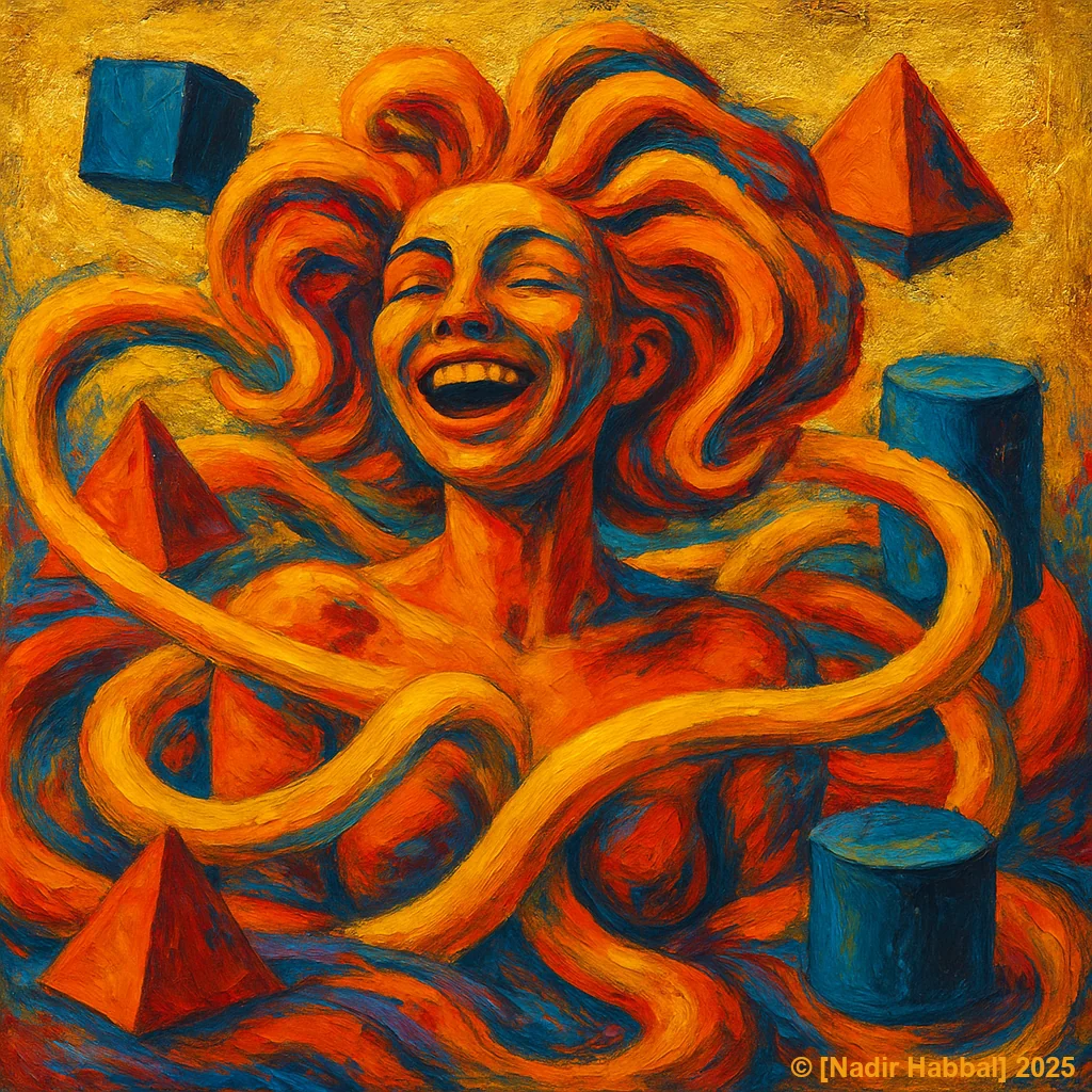 Ein mystisches Frauenporträt in pastoser Ölfarbe mit intensivem Farbspiel. Die grünen Haarstränge wirken wie lebendige Tentakel im goldenen Wirbel. Die Darstellung verweist auf spirituelle Tiefe, Ruhe und feminine Urkraft.